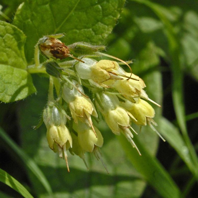 Période de floraisonMars - AvrilInflorescenceRacème de cymes unipares scorpioïdesType de fruitAkèneCouleur de la fleurBlancType de sexualitéHermaphroditePollinisationEntomogameDisséminationÉpizoochoreSource : Julve, Ph., 2021 ff. - Baseflor. Index botanique, écologique et chorologique de la flore de France. Version : 27 avril 2021Haut. 15-50 cm, non rameuse, sans stolons. Plante hérissée de poils courts. Feuilles ovales-oblongues, 1,5-2,5 fois plus longues que larges, brusquement rétrécies en pétiole, les inf. à long pétiole, les sup. à pétiole court, pétioles tous ailés et un peu décurrents. Corolle jaune clair, tubuleuse, longue de 7-14 mm. à petits lobes triangulaires, obtus, dressés ; gorge à écailles dépassant la corolle. Calice fendu jusqu'aux 3/4 en 5 lobes lancéolés, aigus.Source : Flora Helvetica 2018Répartition